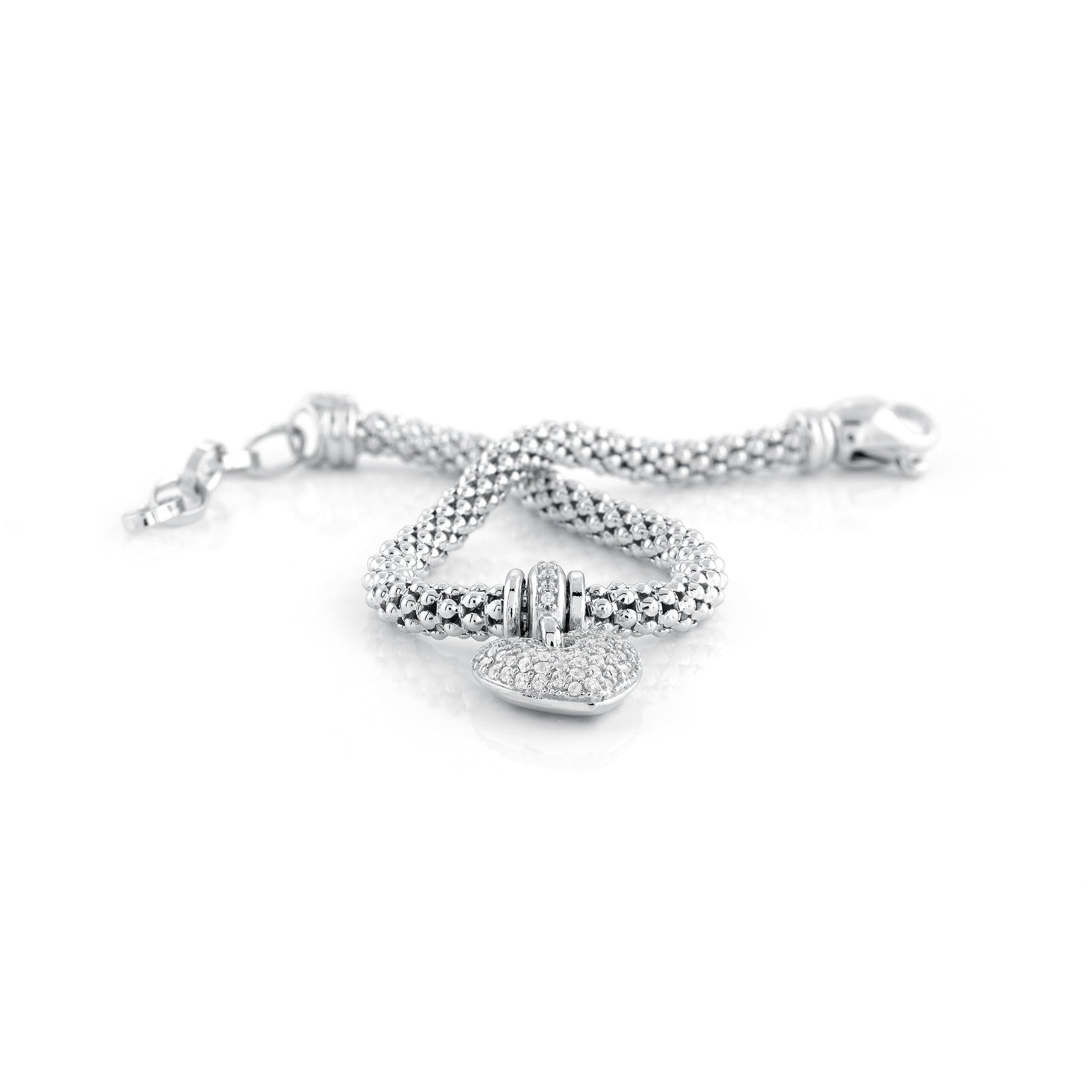 Mesh Bracelet With Puffed Pave Heart in White